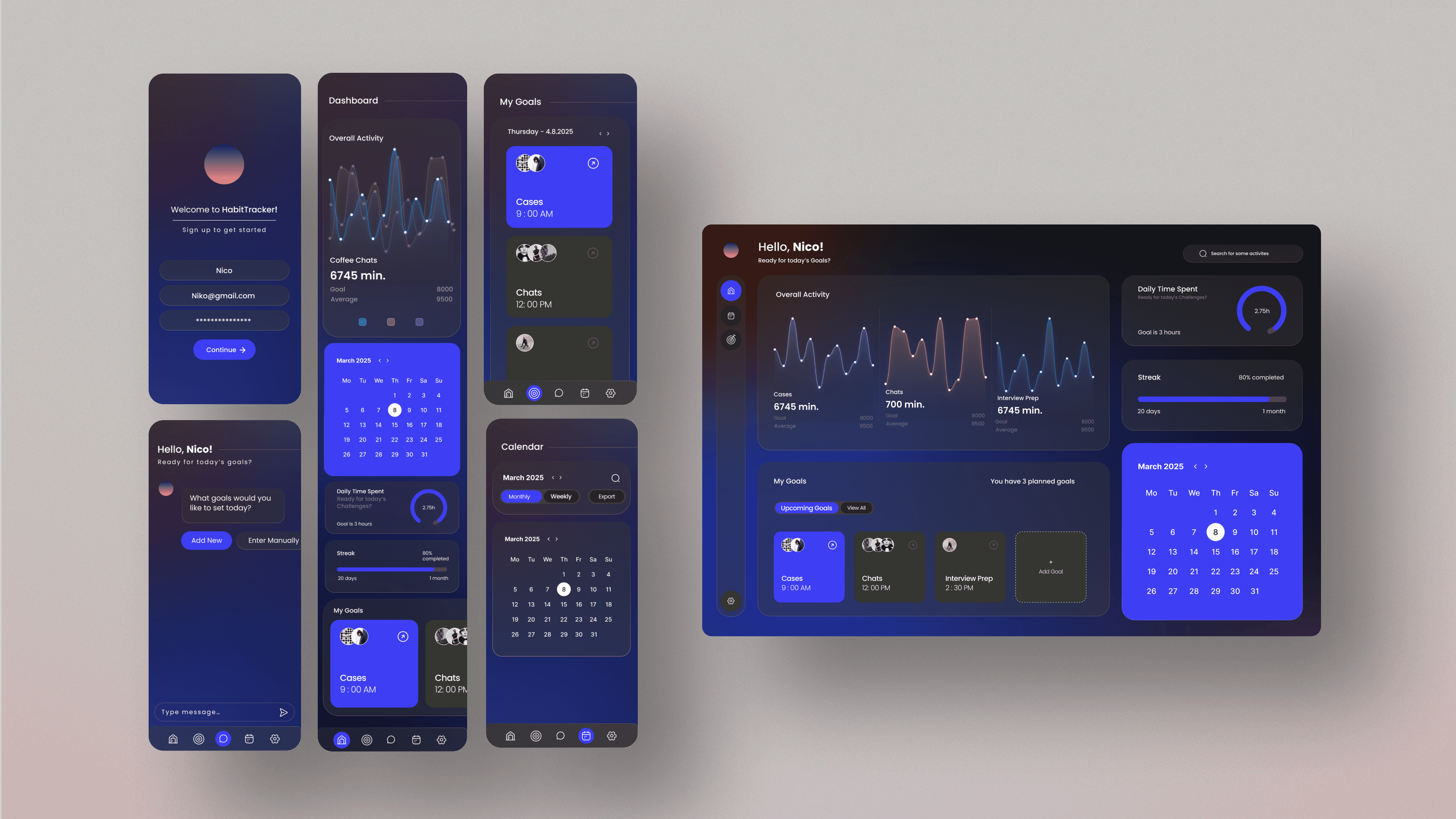 Our goal was to build a habit-tracking app for graduate students managing school, work, and personal goals.